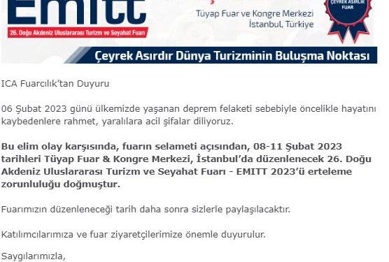 ÜLKEMİZDE YAŞANAN DOĞAL AFETLERDEN DOLAYI EMİTT 2023 FUARI İLERİ BİR TARİHE ERTELENMİŞTİR.