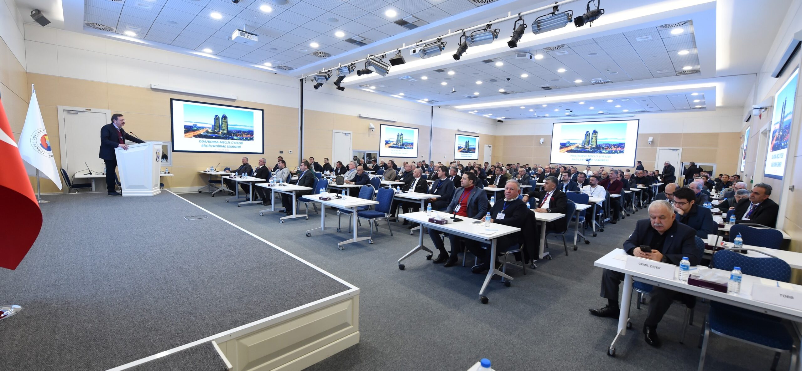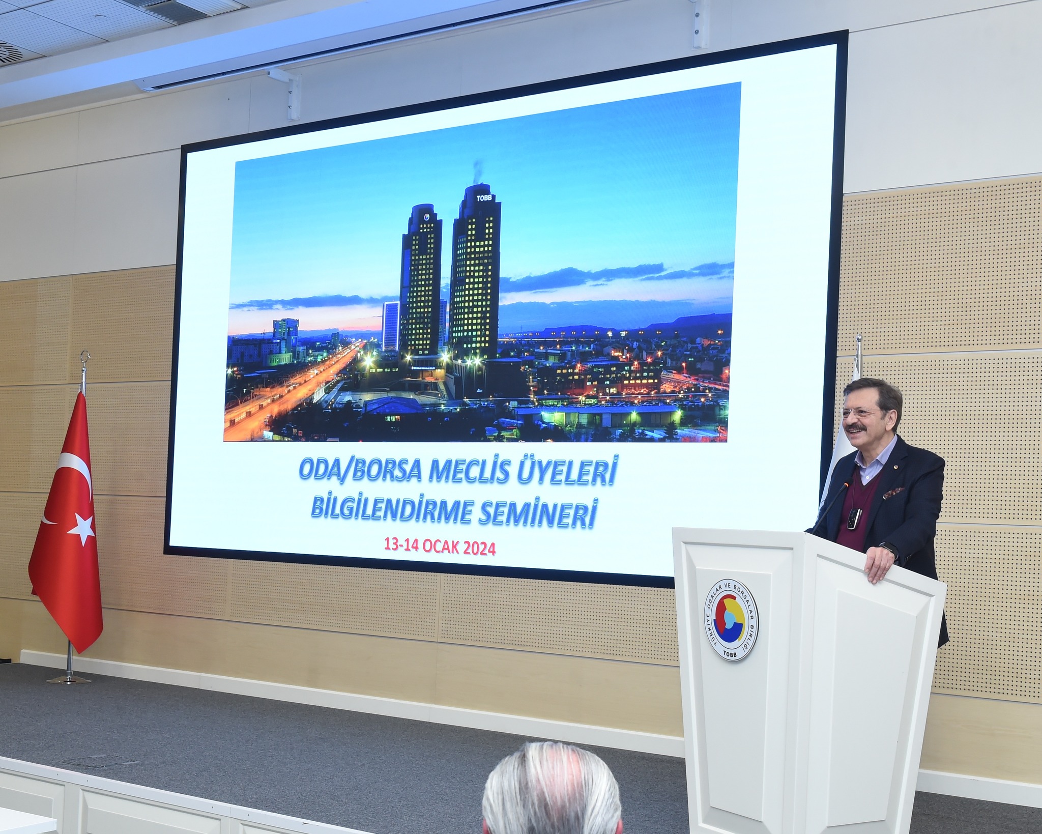 Seminerin açılış konuşmasını yapan TOBB Başkanı Rifat Hisarcıklıoğlu yaptığı konuşmada, TOBB’un Türkiye’nin en demokratik kurumu olduğunu ifade ederken, seçime girdiğinizde rakibinizden oy istersiniz. Herkes burada seçilerek gelir, atanan kimse yoktur” dedi. Bilgilendirme seminerlerinin, içinde bulundukları kurumu tanımak için çok güzel bir fırsat olduğunu söyleyen Hisarcıklıoğlu, “Girişimci demek, sıfırdan gelen kişi demektir. Risk alan kişi demektir. Hayal kuran, hedef koyan, kaybeden, kazanan kişidir. Bu kurum sizlerden oluşuyor. O yüzden güçlüyüz. Bu işlerde para pul yok. Cepten, aileden gider. Ama bu işte bir ticaret var. Bu makamlar bize gerçek dünya için fırsat. İnsanların en hayırlısı, insanlara faydalı olandır” diye konuştu.”