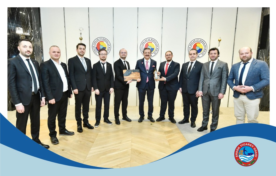TOBB Balıkesir Genç Girişimciler Kurulu Başkanı Ceyhun Ercan ve Erdek Ticaret Odası Genç Girişimciler Kurulu Başkanı Anıl Durak Türkiye Odalar ve Borsalar Birliği (TOBB) Başkanı M. Rifat Hisarcıklıoğlu’nu makamında ziyaret etti.